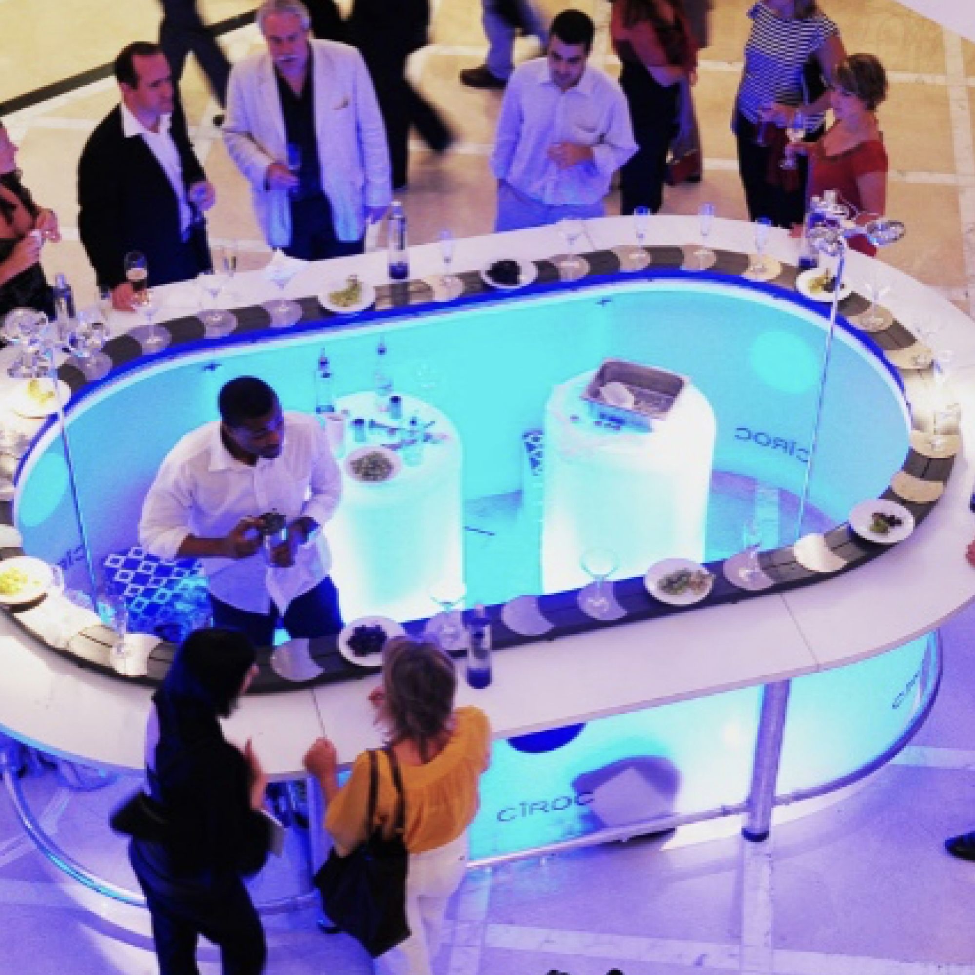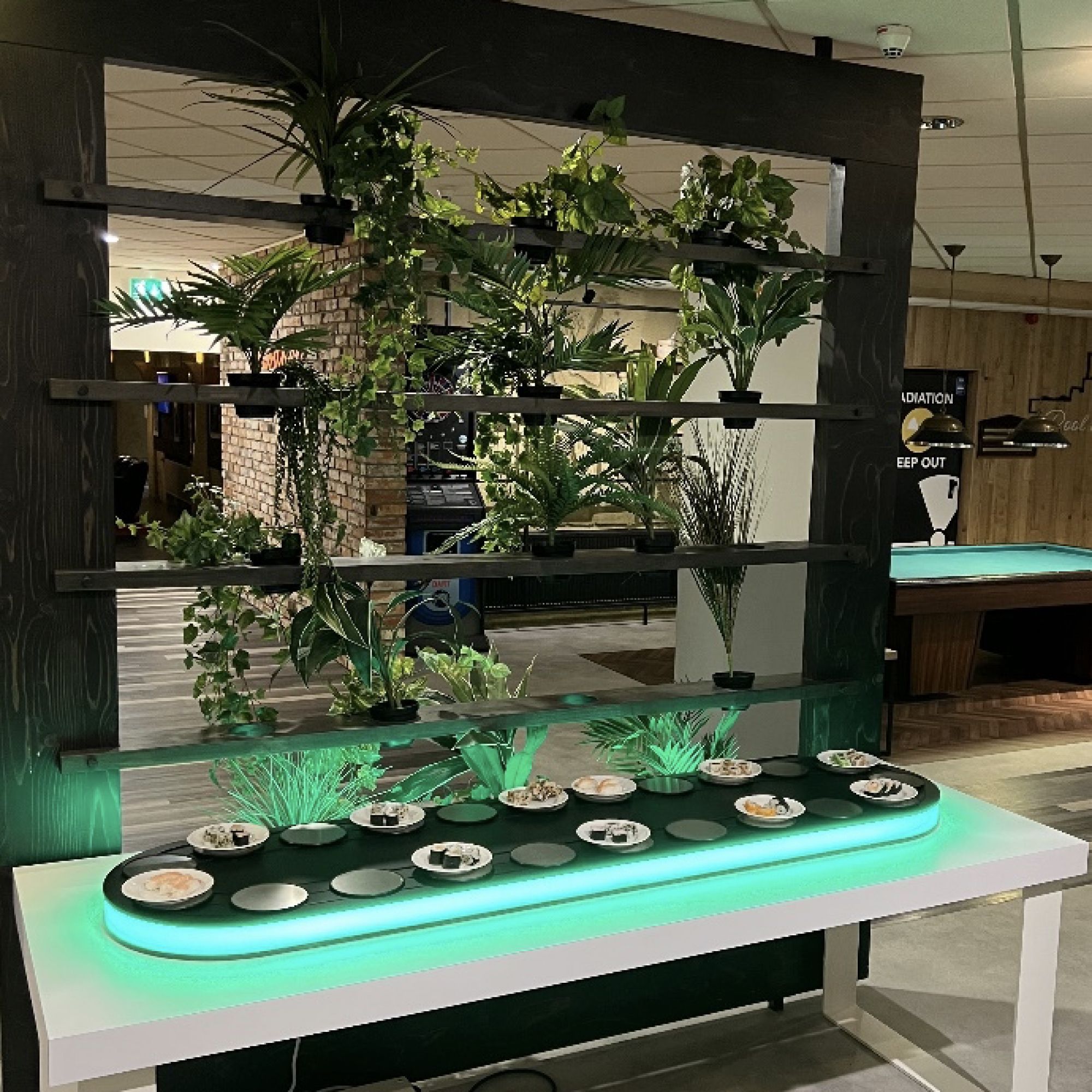 Op zoek naar een originele manier om uw producten te presenteren? Dat kan met deze bijzondere Bar met lopende-presentatie-band waarmee u uw producten origineel laat opvallen.